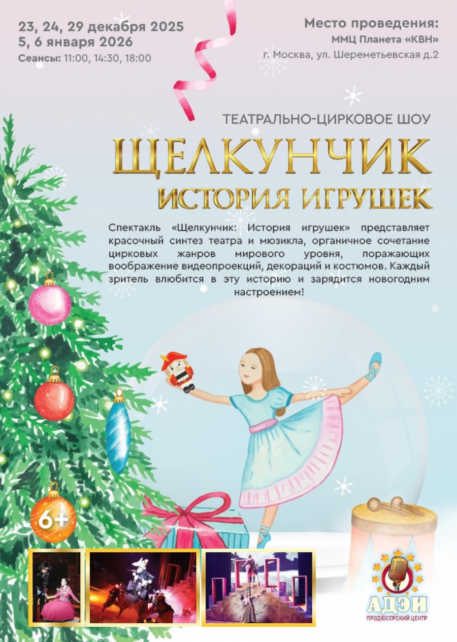 25 декабря 2024 года в Большом концертном зале «Космос» по адресу: проспект Мира, 150 в 14:00 и 18:00